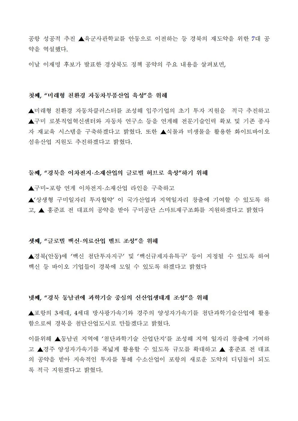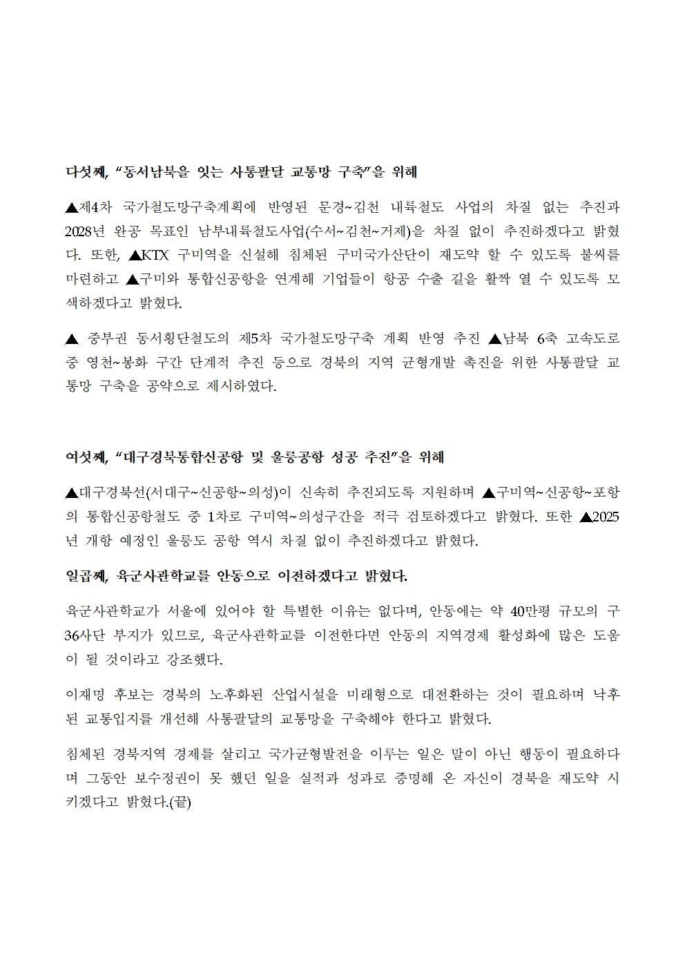 [보도자료] 더불어민주당 선대위 정책본부 경북지역공약
