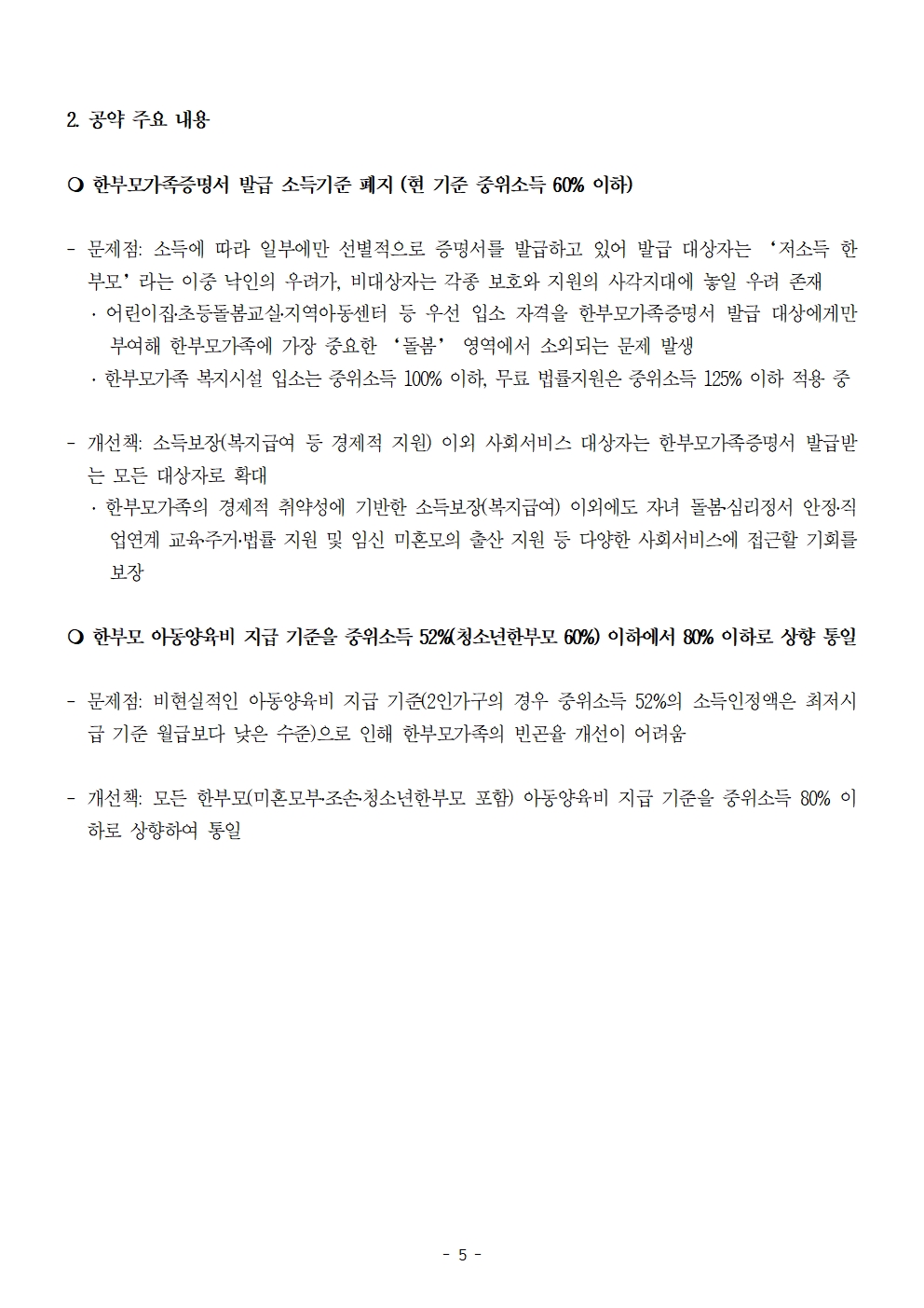[보도자료] 더불어민주당 선대위 정책본부, '이재명은 합니다. 소확행 공약 시리즈 63' 한부모가족 선별복지 개선 공약 발표