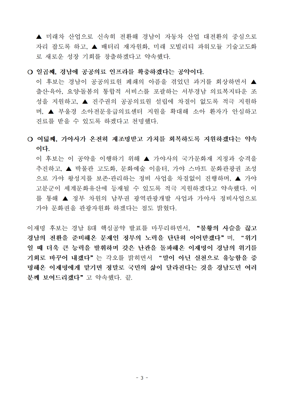 [보도자료] 더불어민주당 선대위 정책본부, 경남 8대 공약 발표
