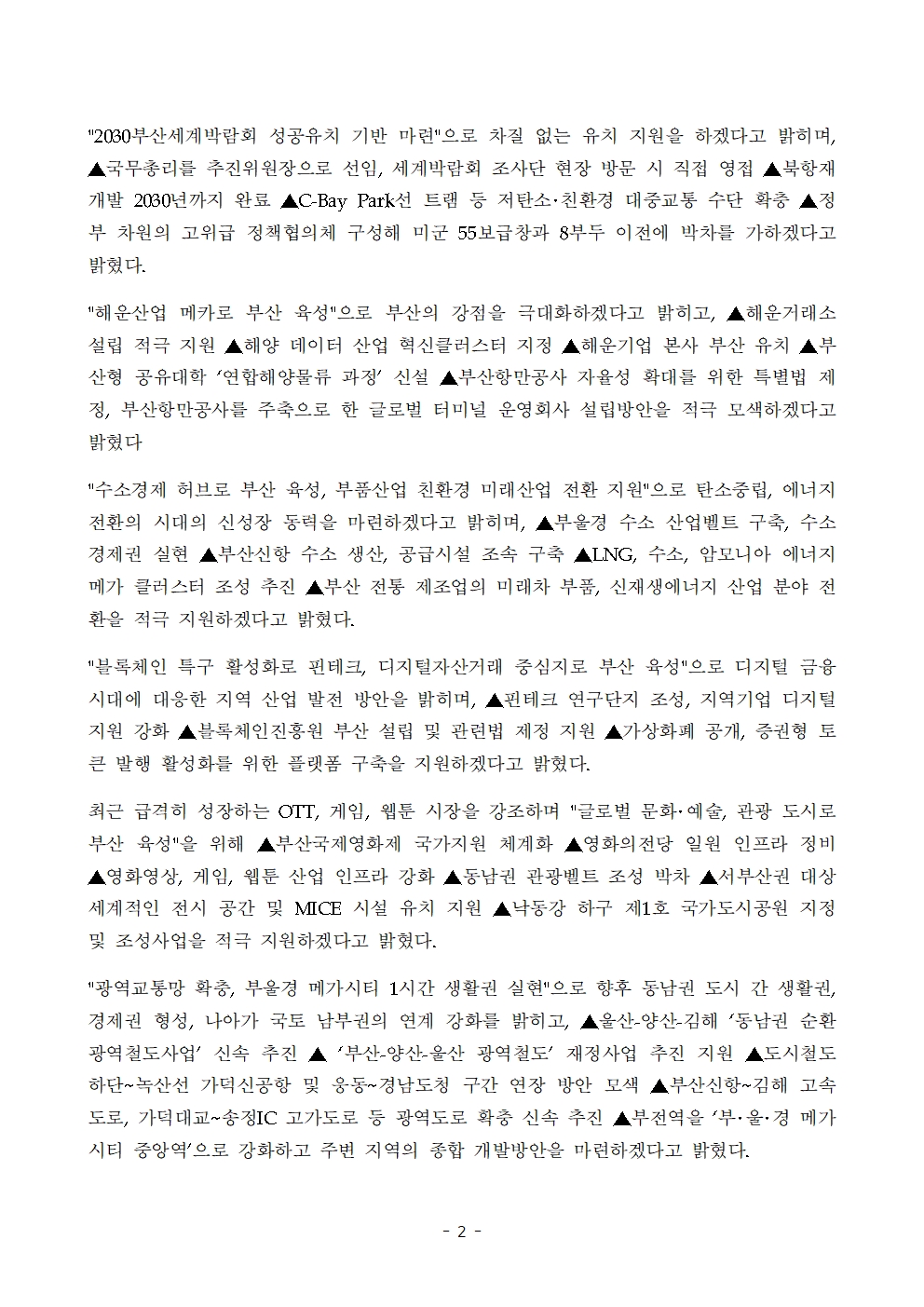 [보도자료] 더불어민주당 선대위 정책본부, 부산 9대 공약 발표