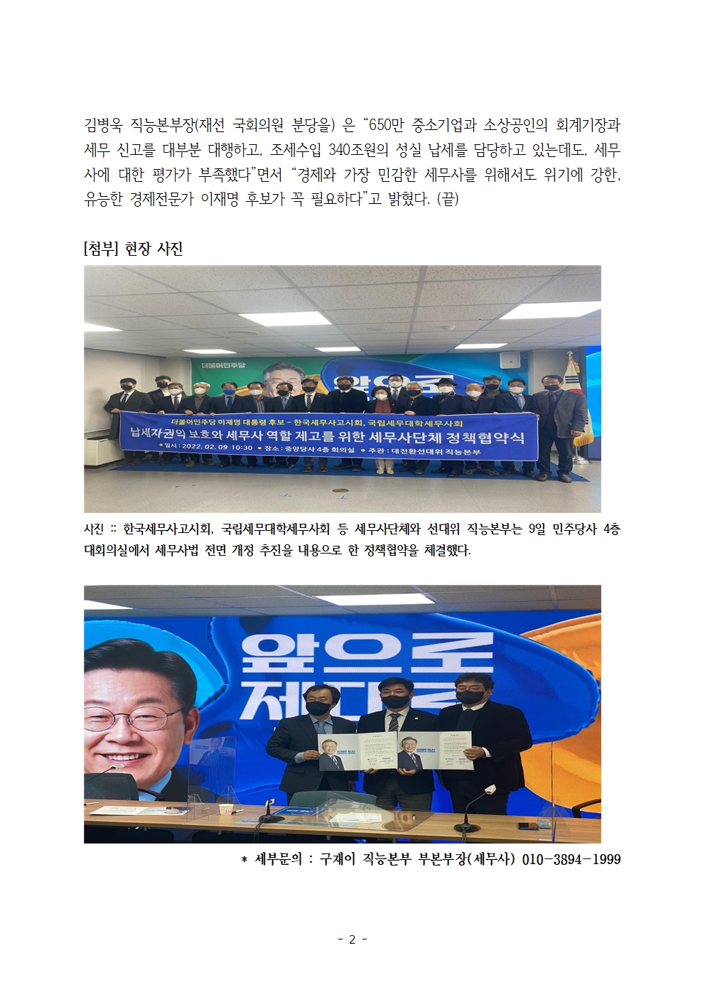 [보도자료] 더불어민주당 선대위 직능본부, 세무사단체-직능본부 '세무사법 전면 개정' 정책 협약