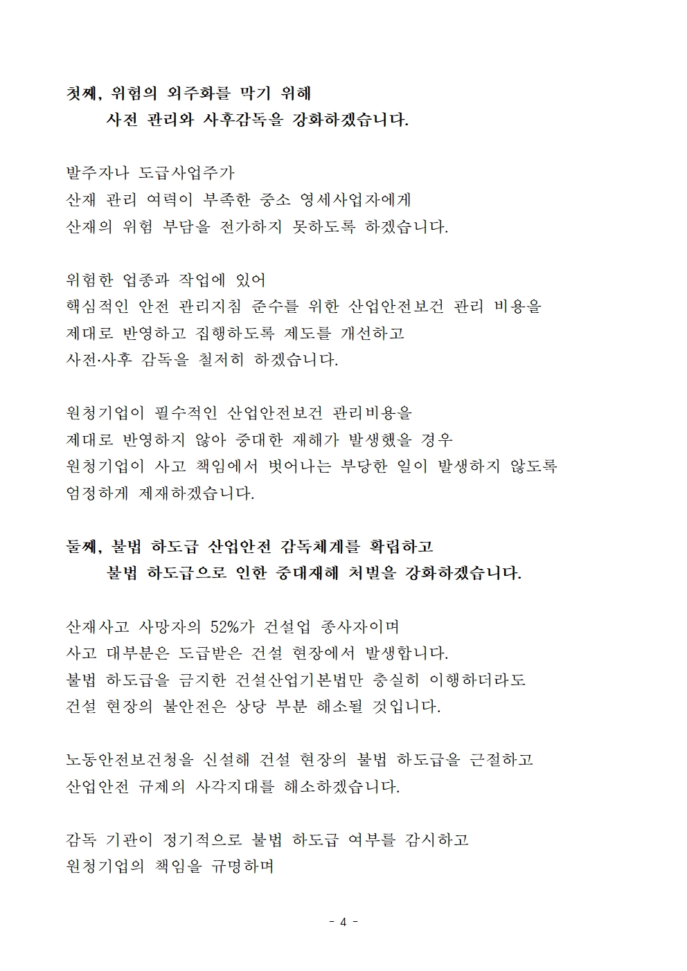 [보도자료] 더불어민주당 선대위 국민안심신안보위원회·노동위원회·공정시장위원회, '산업안전 정책공약' 발표