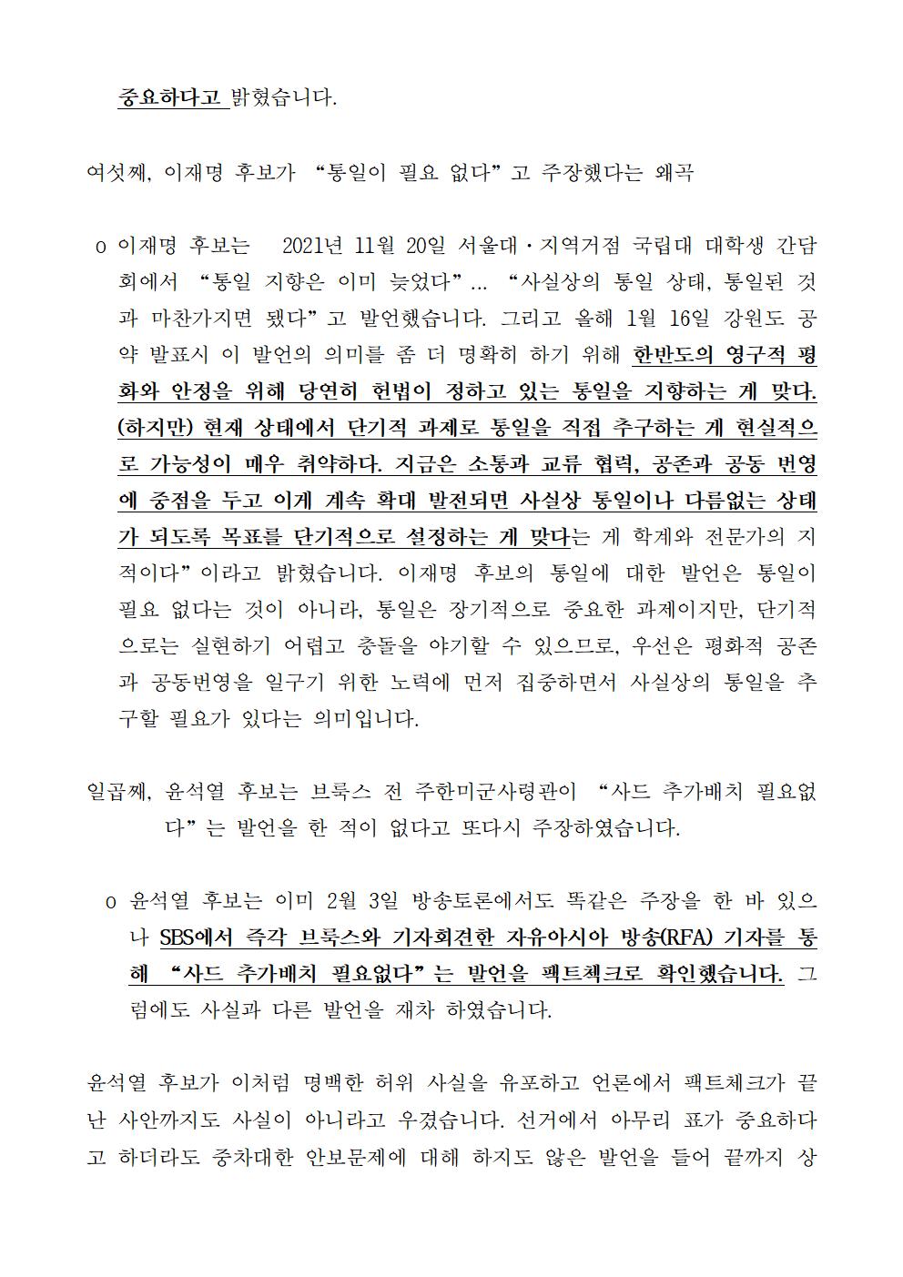 [보도자료] 더불어민주당 선대위 평화번영 위원회 TV토론 외교안보 팩트체크 관련