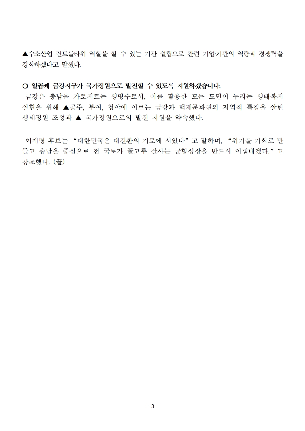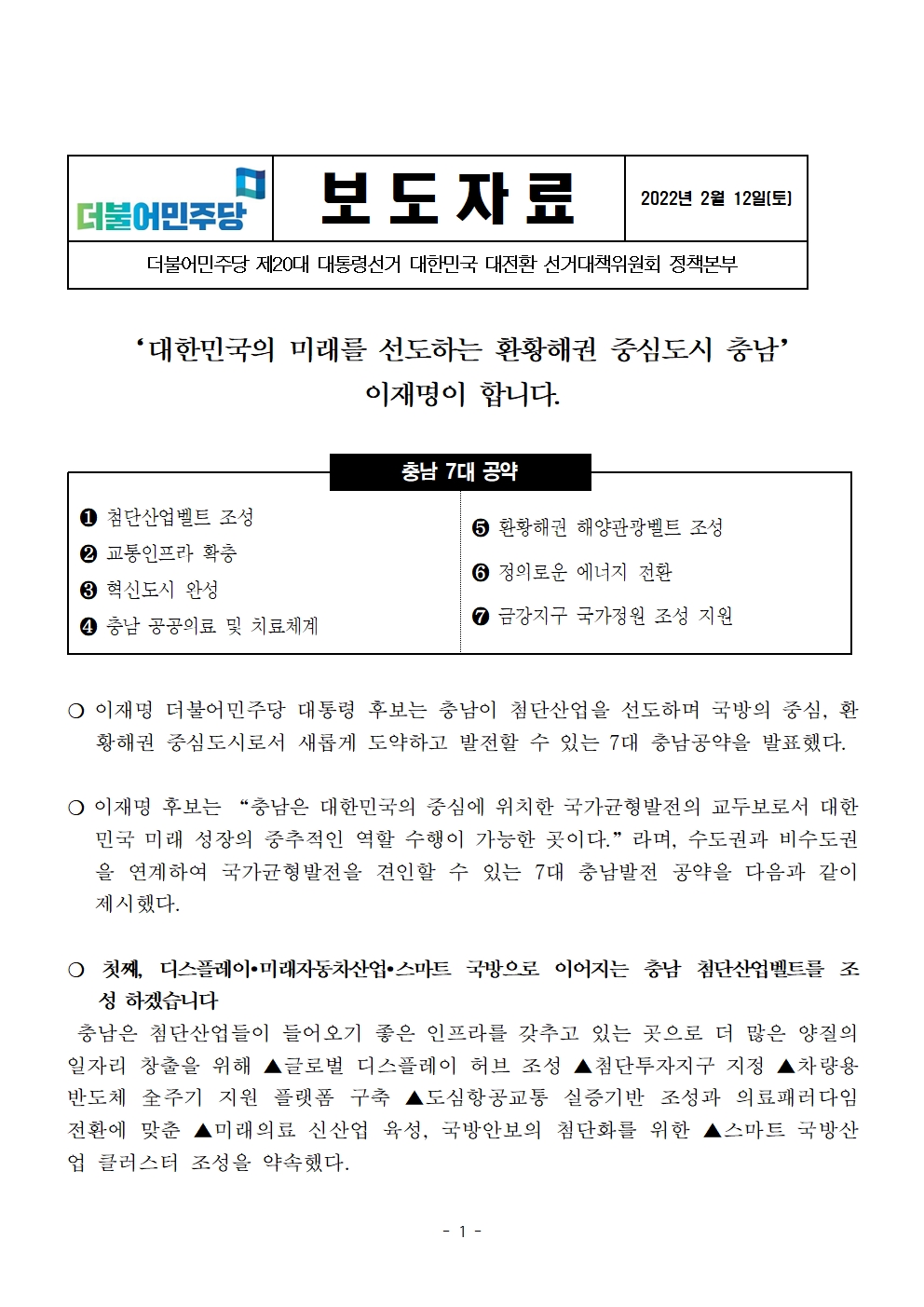 [보도자료] 더불어민주당 선대위 정책본부, 충남 7대 공약 발표