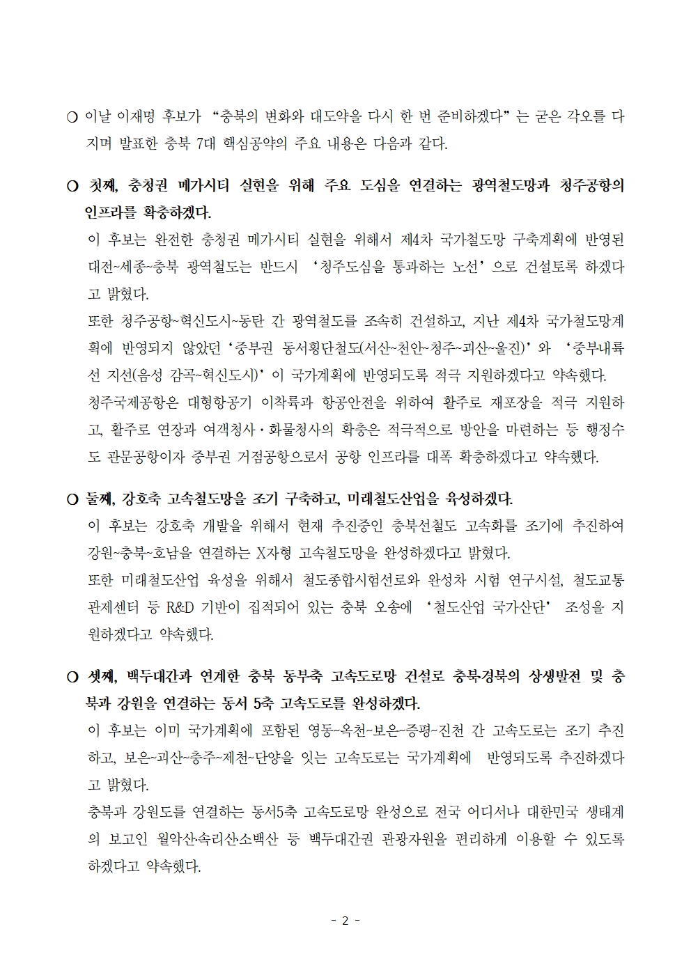 [보도자료] 더불어민주당 선대위 정책본부, 충북 7대 공약 발표