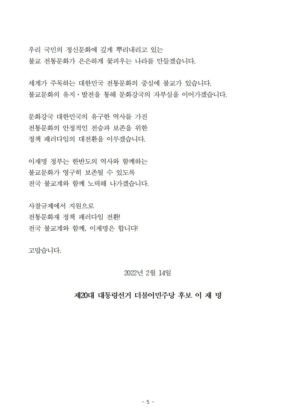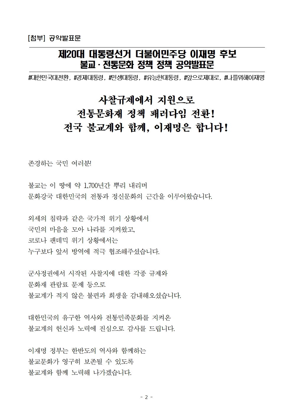 [보도자료] 더불어민주당 선대위 종교위원회, '불교·전통문화 정책' 공약 발표