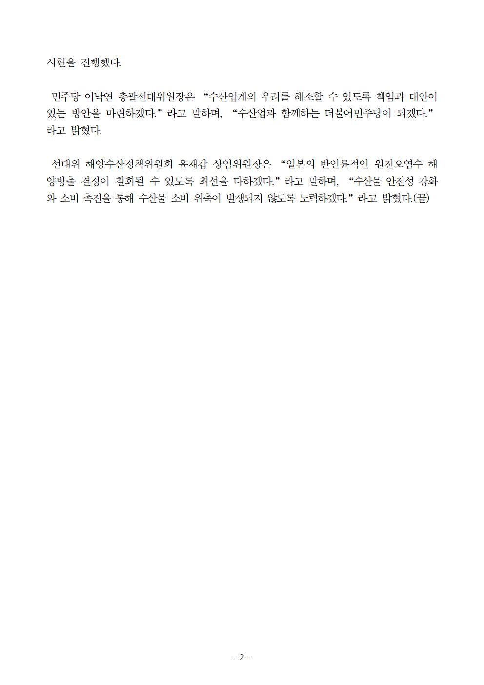 [보도자료] 더불어민주당 선대위 해양수산정책위원회 한국수산업총연합회 초청 정책간담회 개최