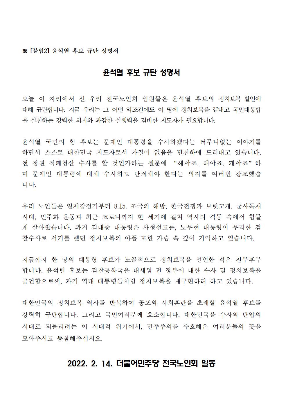 [보도자료] 더불어민주당 전국노인위원회 윤석열 정치보복 망언 규탄 세미나 개최