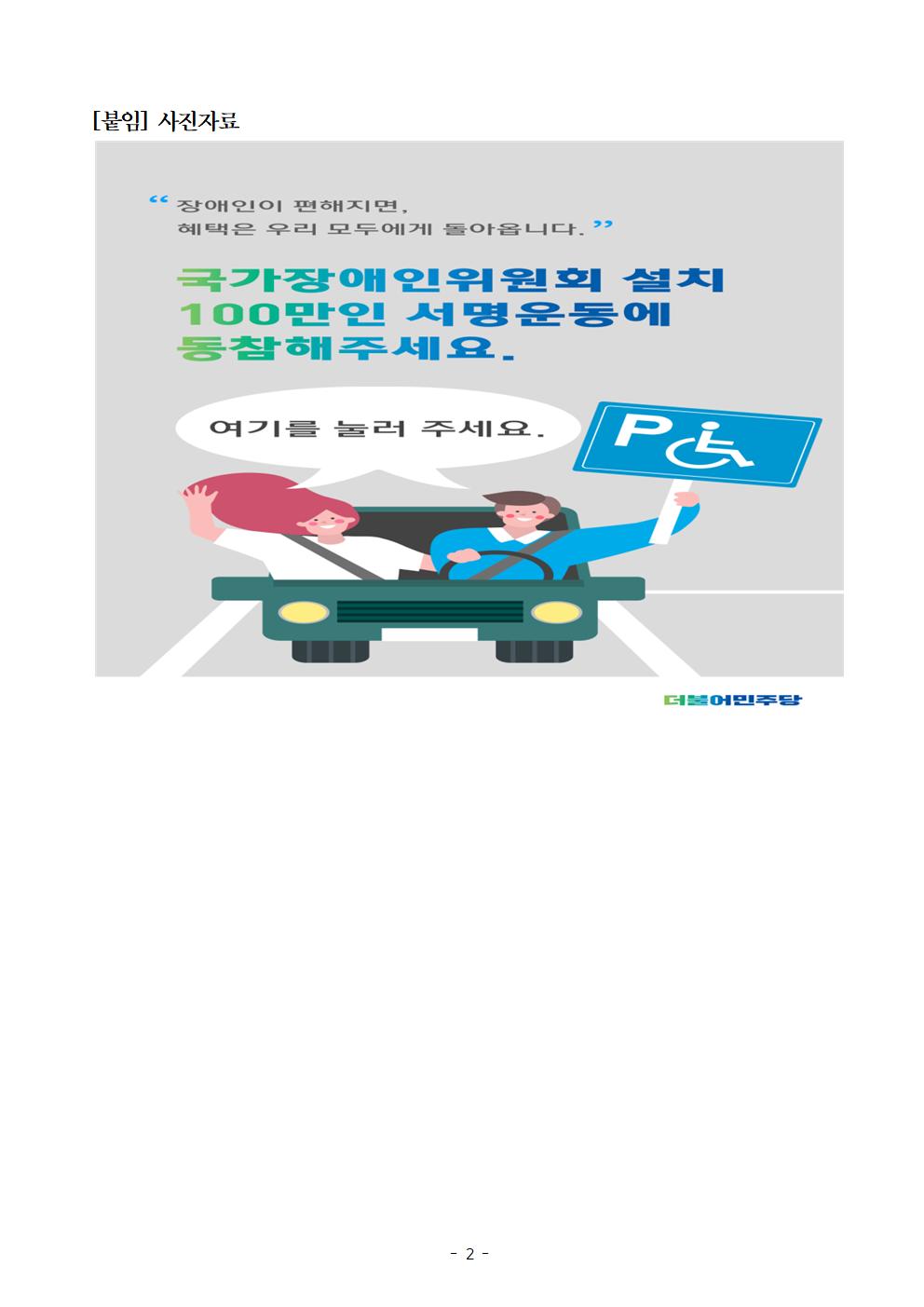 [보도자료] 더불어민주당 선대위 장애인위원회 대통령직속 국가장애인위원회 설치 100만 온라인 서명운동 시작