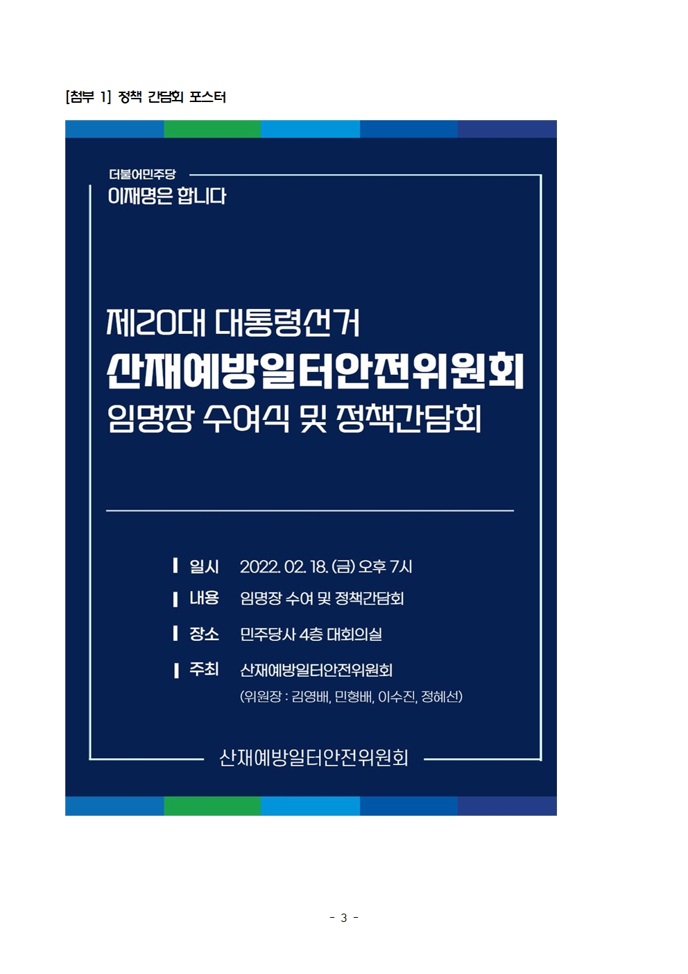 [보도자료] 더불어민주당 선대위 산재예방일터안전위원회, 임명장 수여식 및 정책간담회 개최