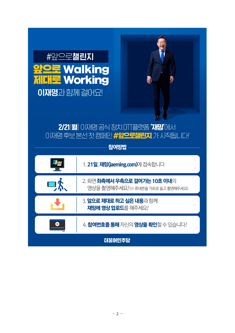 [보도자료] 더불어민주당 선대위 김영희C센터, 이재명 후보, 본선 첫 캠페인 ‘앞으로 캠페인’ 시작