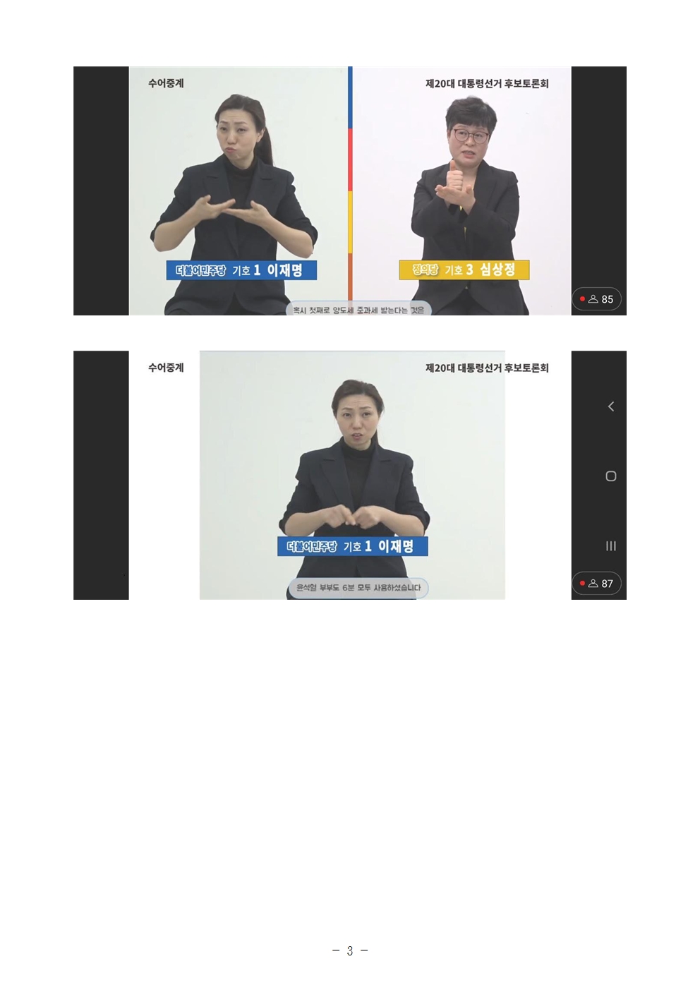 [보도자료] 더불어민주당 다이너마이트 청년선대위, 농인을 위한 선거방송 토론회, '발화자별 수어 통역 배치' 첫발