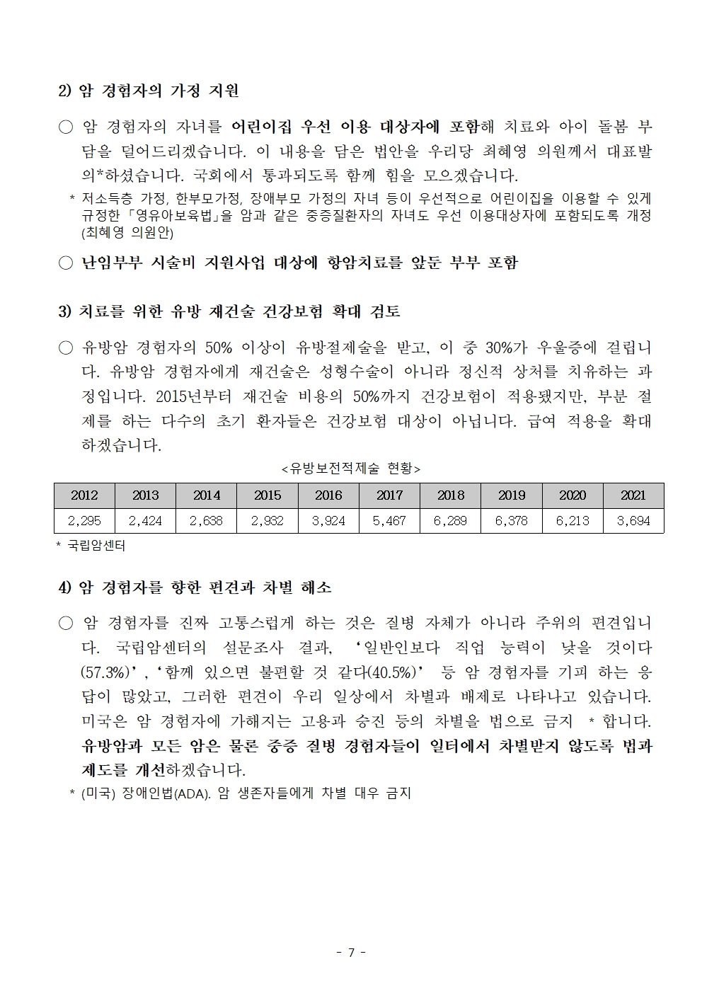 [보도자료] 더불어민주당 선대위 정책본부, '이재명은 합니다. 소확행 공약 시리즈 77' 암 경험자 사회복귀 지원 공약 발표