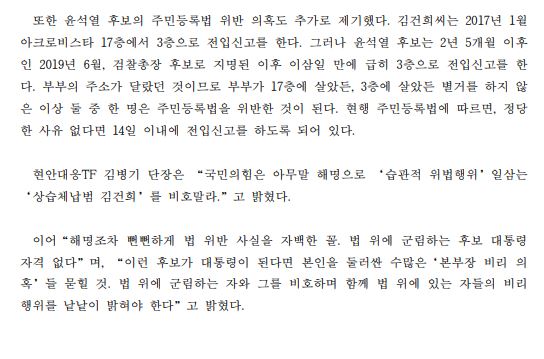 [보도자료] (더불어민주당 선대위 현안대응TF) 김건희 상습 체납 해명은 ‘위장전입’, ‘주민등록법 위반’ 자백한 꼴..실거주,주민등록상 주소 3년간 달랐다는 것인가?