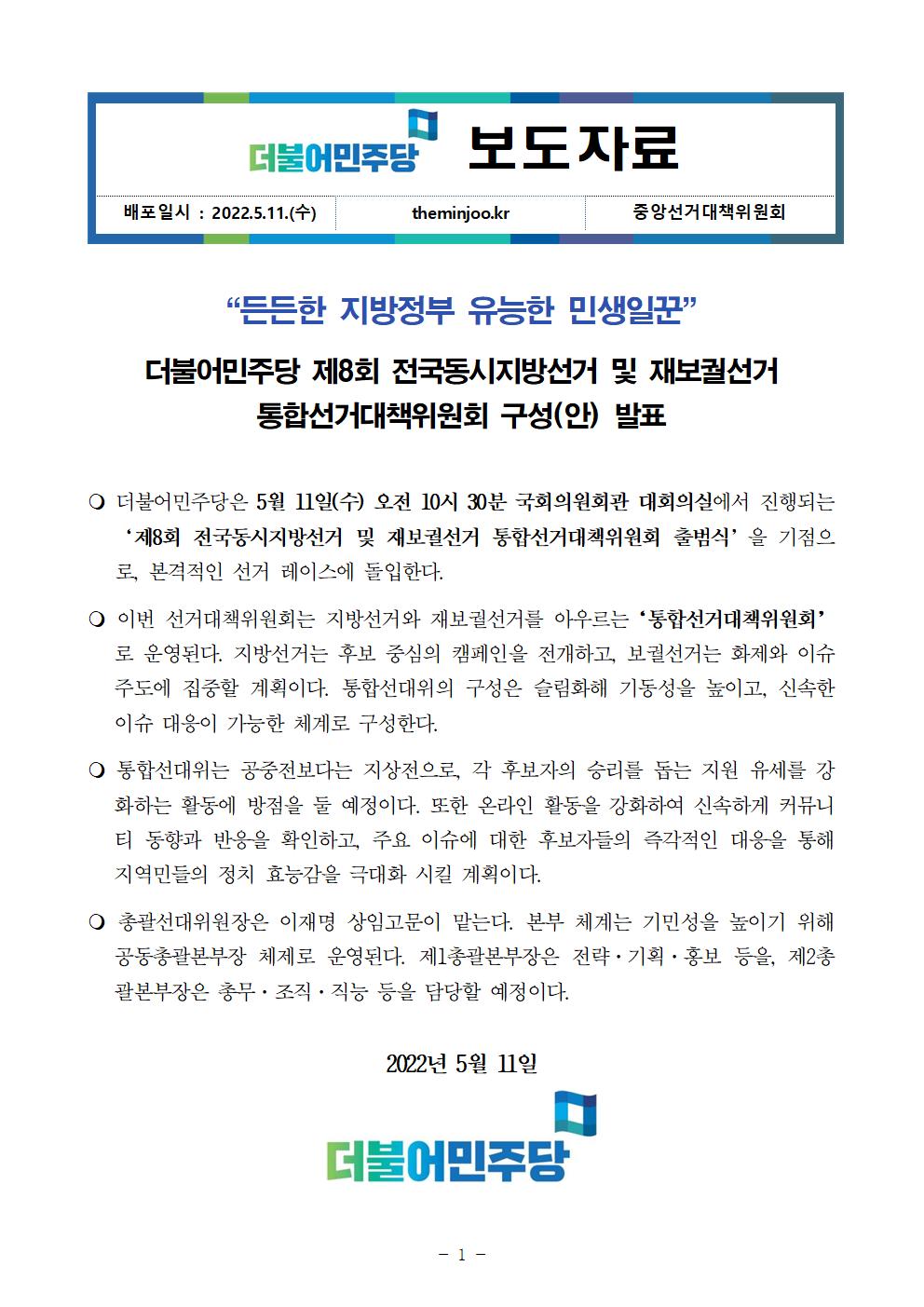 220511(보도자료)전국동시지방선거_및_재보궐선거_통합선거대책위원회_구성안_발표(최종).pdf