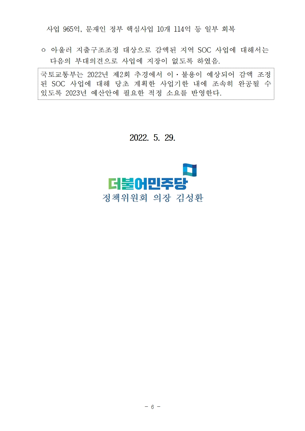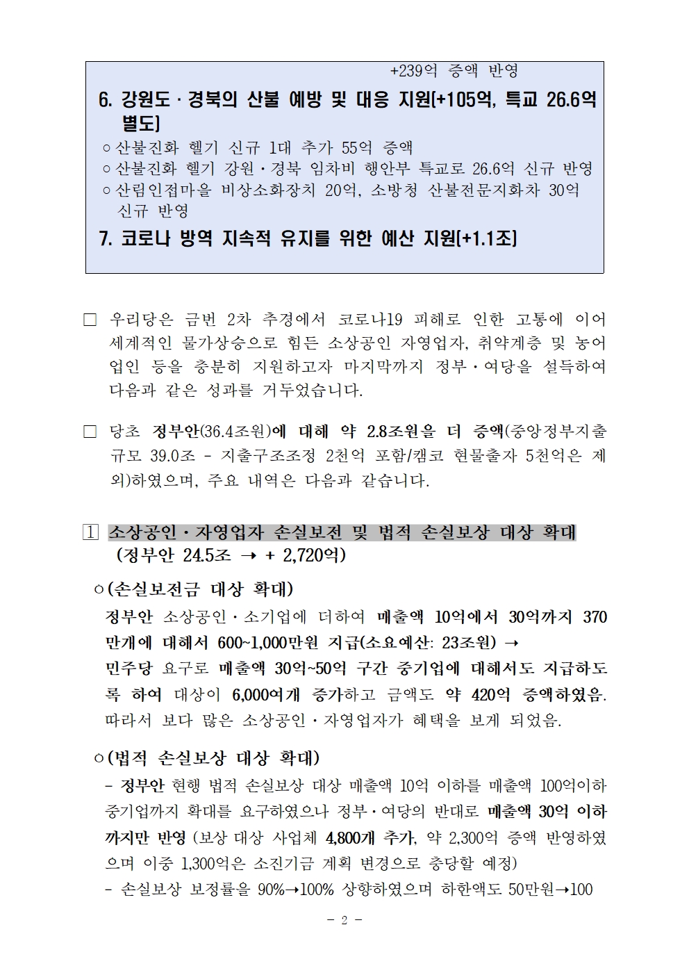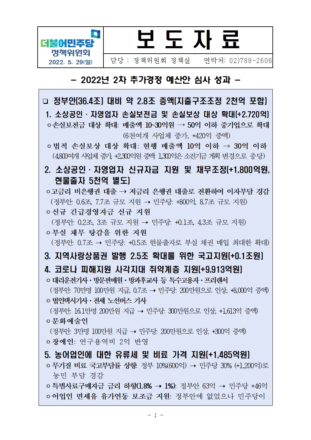 [보도자료] 더불어민주당 정책위원회, 2022년 2차 추가경정 예산안 심사 성과