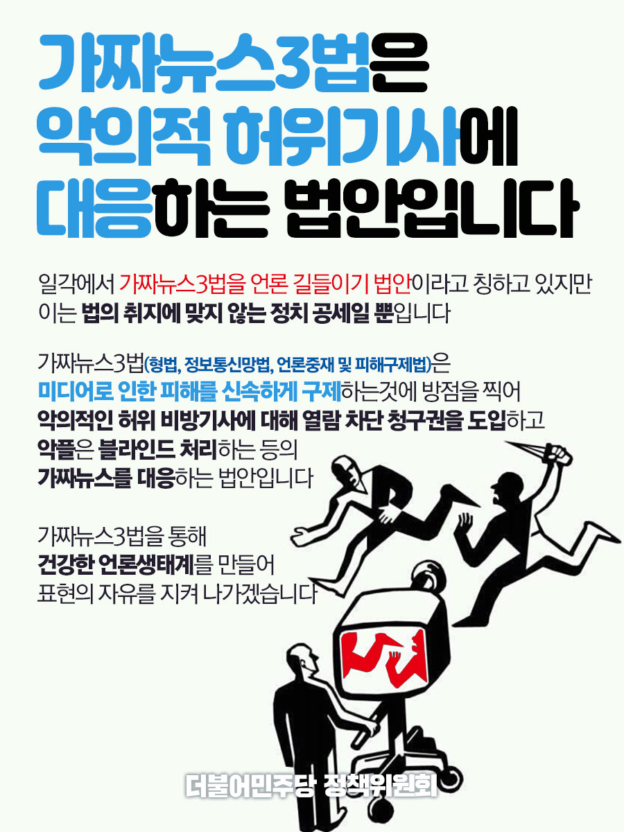 가짜뉴스3법은 악의적 허위기사에 대응하는 법안입니다