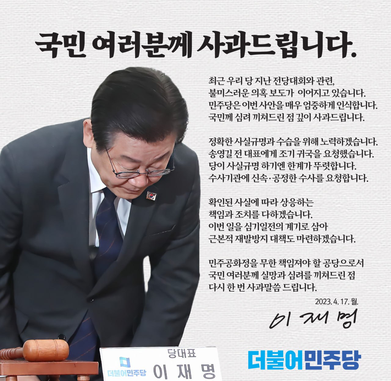 국민 여러분께 사과드립니다.