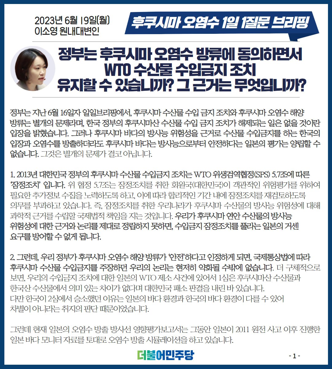 23.06.19 후쿠시마 오염수 1일1질문 브리핑