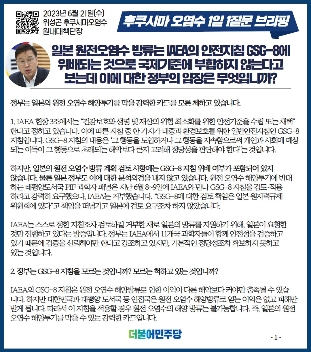 23.06.21 후쿠시마 오염수 1일1질문 브리핑
