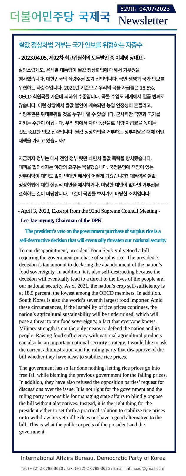 [529th Newsletter]Excerpt from the 92nd Supreme Council Meeting