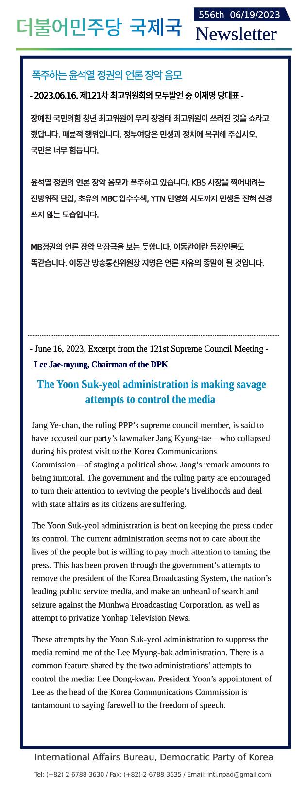 [557th Newsletter]Excerpt from the Representative Speech of the Negotiating Body
