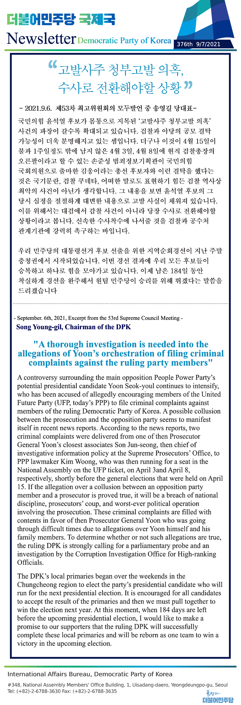[376th Newsletter]Excerpt from the 53rd Supreme Council Meeting