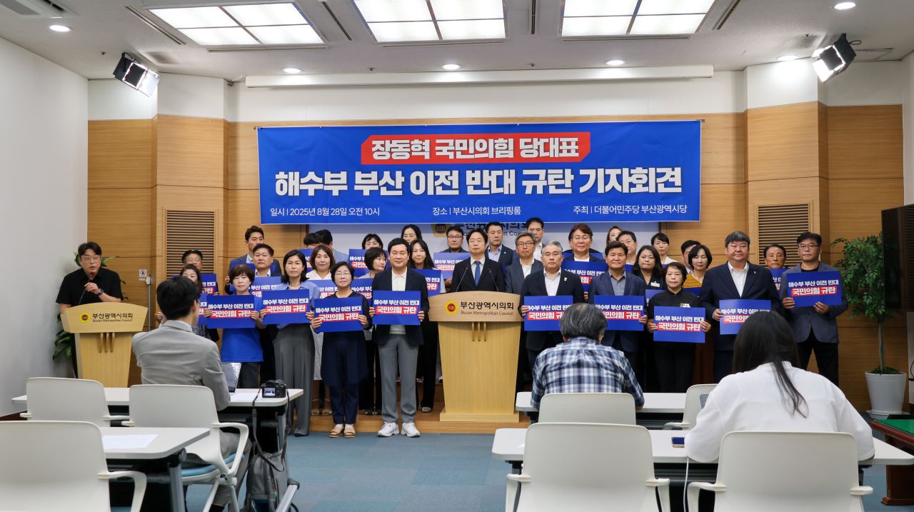 - 장동혁 국민의힘 신임 당대표 해수부 부산 이전 반대 규탄 기자회견 (25.08.28)