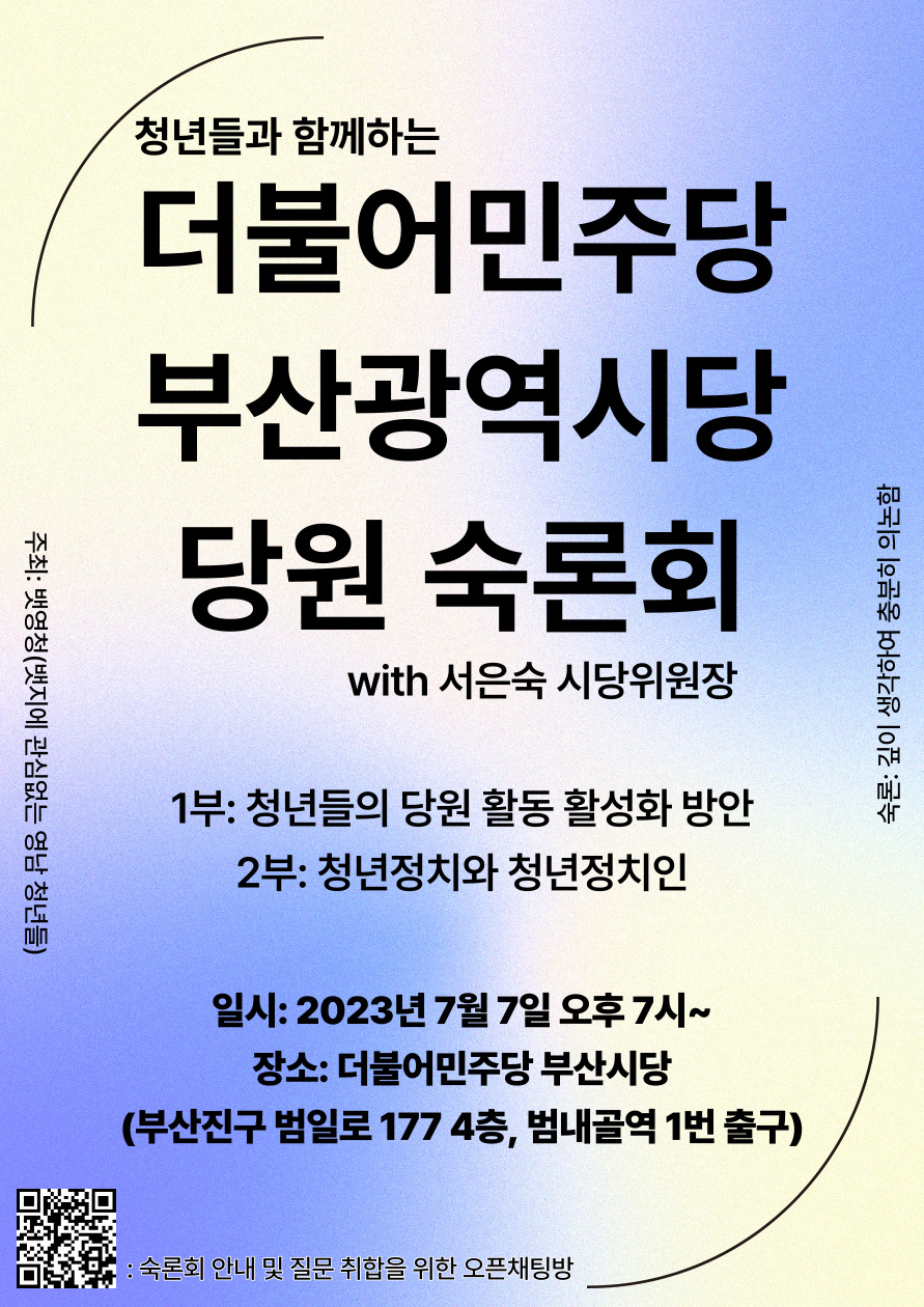 더불어민주당 부산시당 당원 숙론회 개최 안내