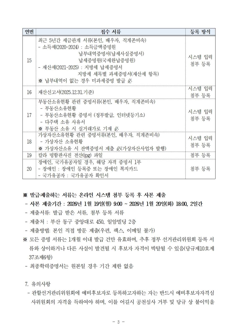 260109_더불어민주당 부산시당 예비후보자자격검증위원회 제출서류 목록 및 접수증.hwp