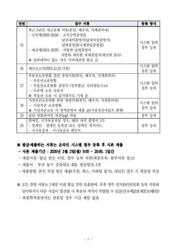 * 공직후보자 범죄경력회보서: 발급까지 14일 소요되고 있는 상황이므로 즉시 신청 필요