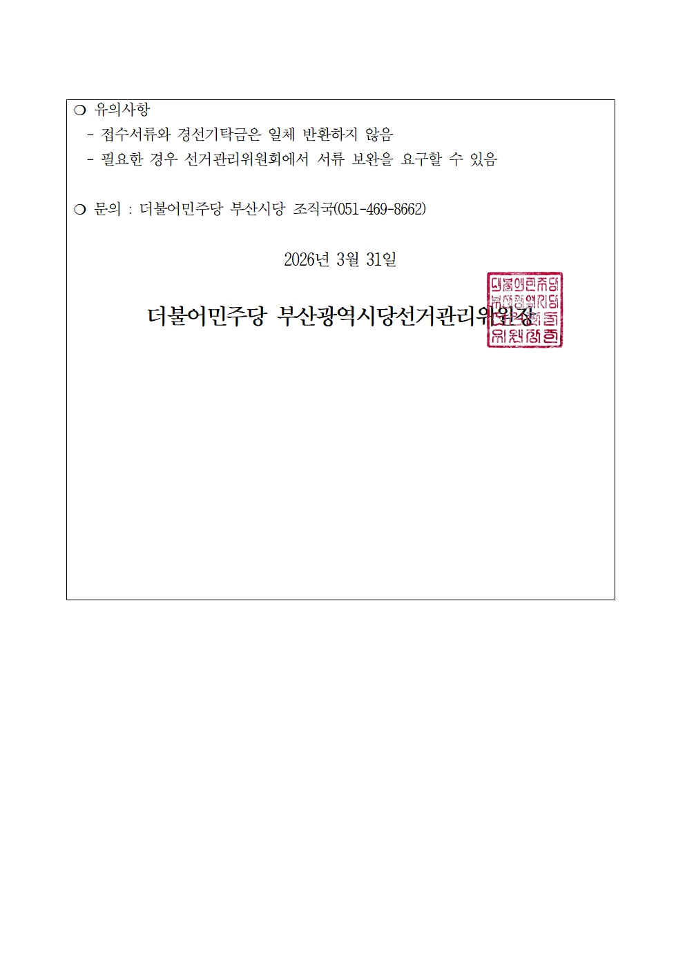 - 접수계좌 : 농협 929-01-253458 (예금주 : 더불어민주당 부산광역시당)