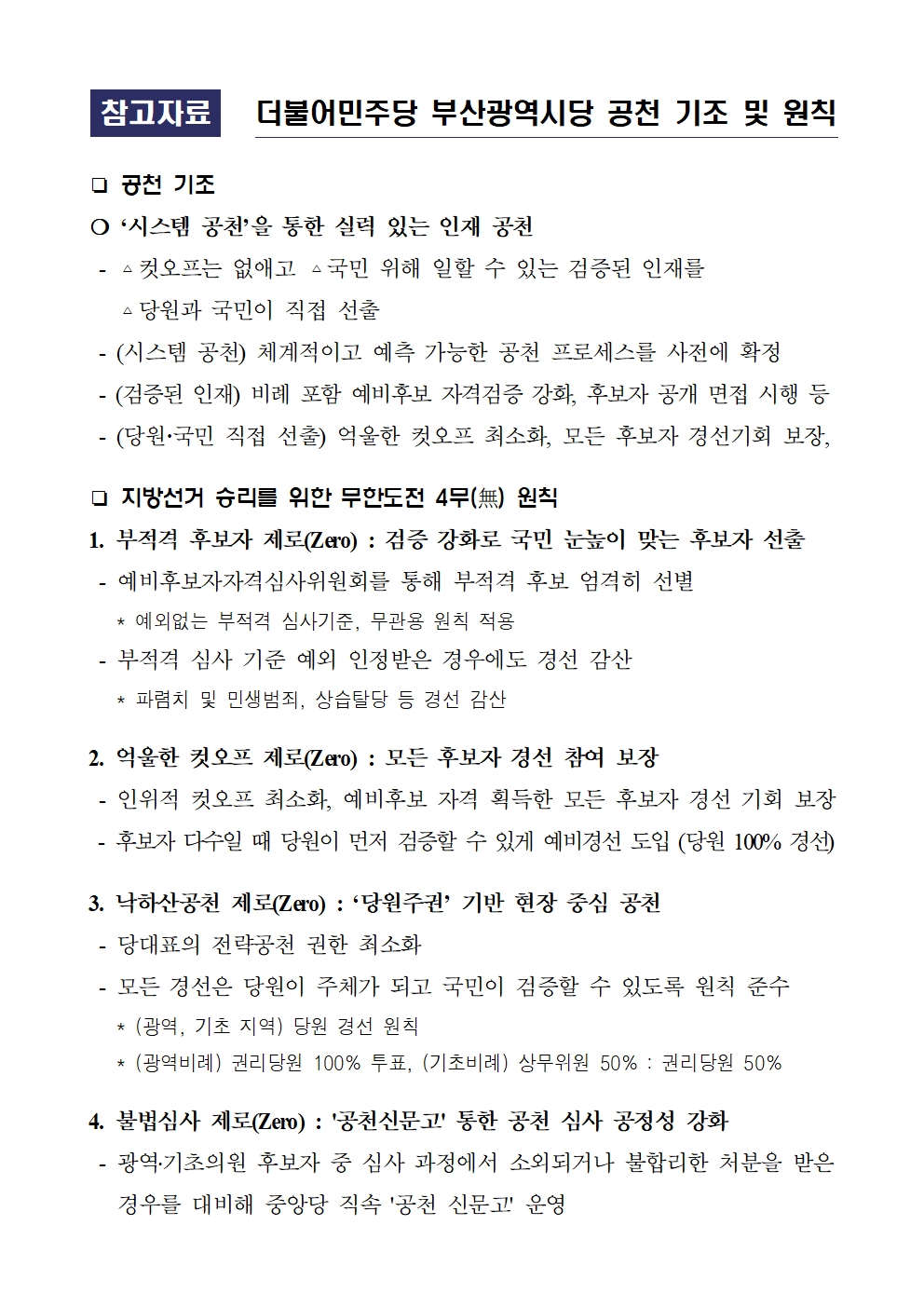 5. 부산시당 공천 기조 및 원칙