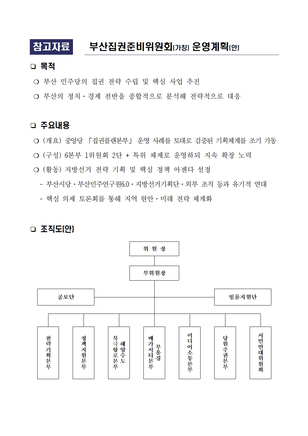 # 첨부 : 1. 부산집권준비위원회(가칭) 운영계획