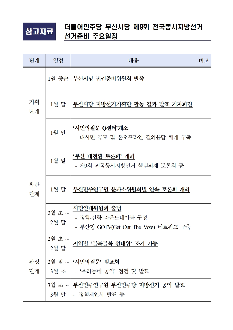 4. 부산시당 선거 준비 주요 일정