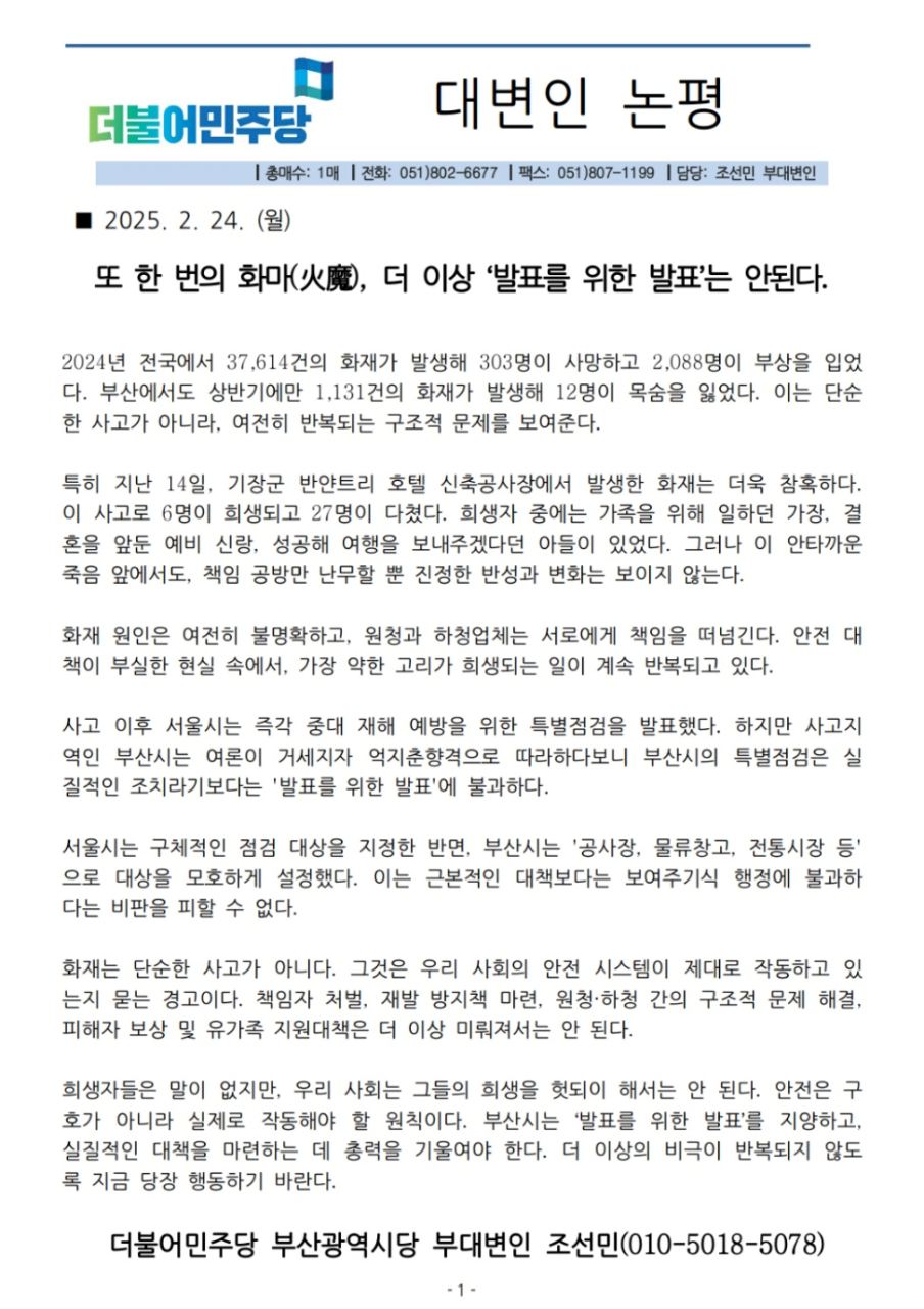 또 한 번의 화마(火魔), 더 이상 ‘발표를 위한 발표’는 안된다